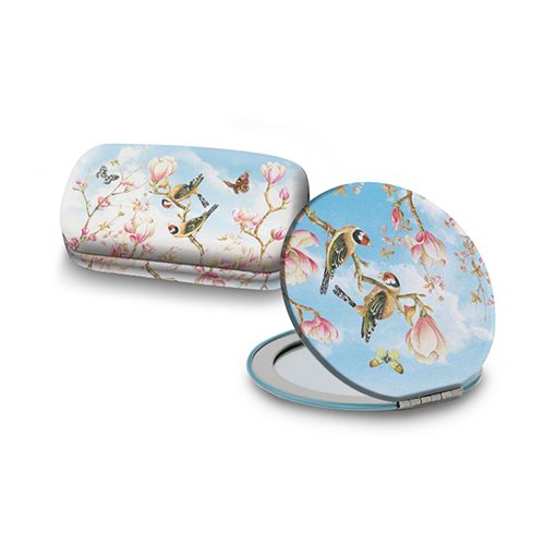 Lipstickkoker met spiegeltje. Breedte 9cm, hoogte 3,1cm en Diepte 4,9cm